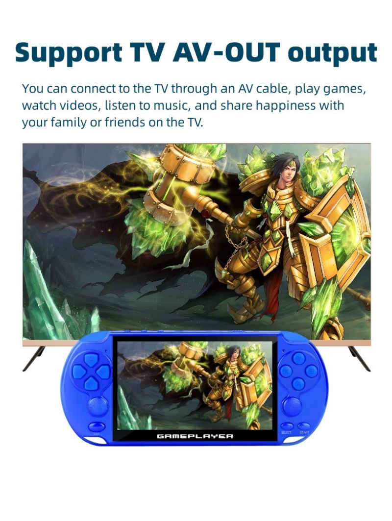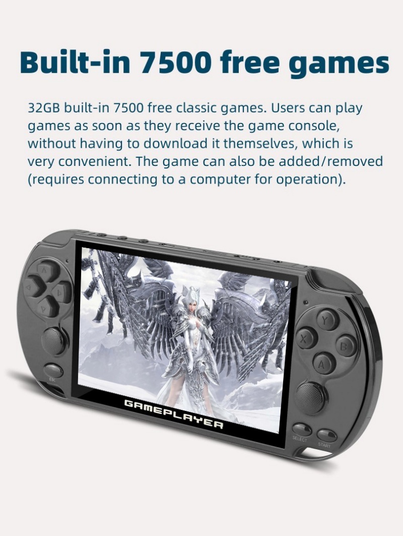 4.32GB built-in 7500 free classic games. Users can play games as soon as they receive the game console, without having to download it themselves, which is very convenient. The game can also be added/removed (requires connecting to a computer for operation).