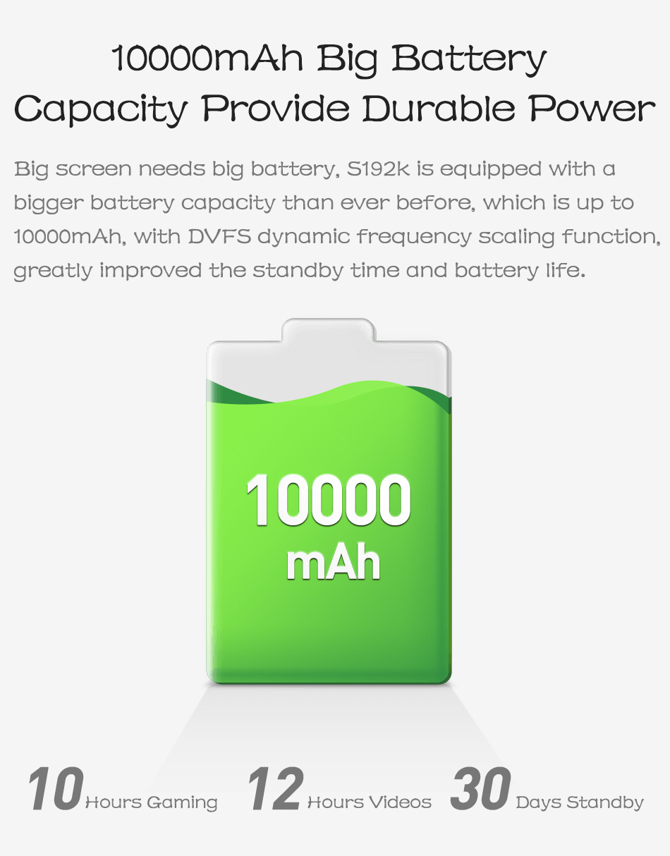 • Battery;10000mAh Lithium-io Polyme Battery.