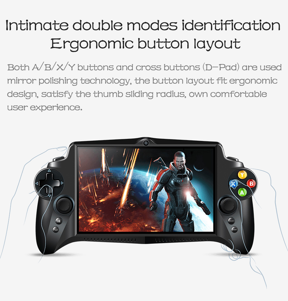 • Buttons:Direction key, ABXY, Double LR buttons, Two sticks, Select, Start, Volumn, Reset, Power.