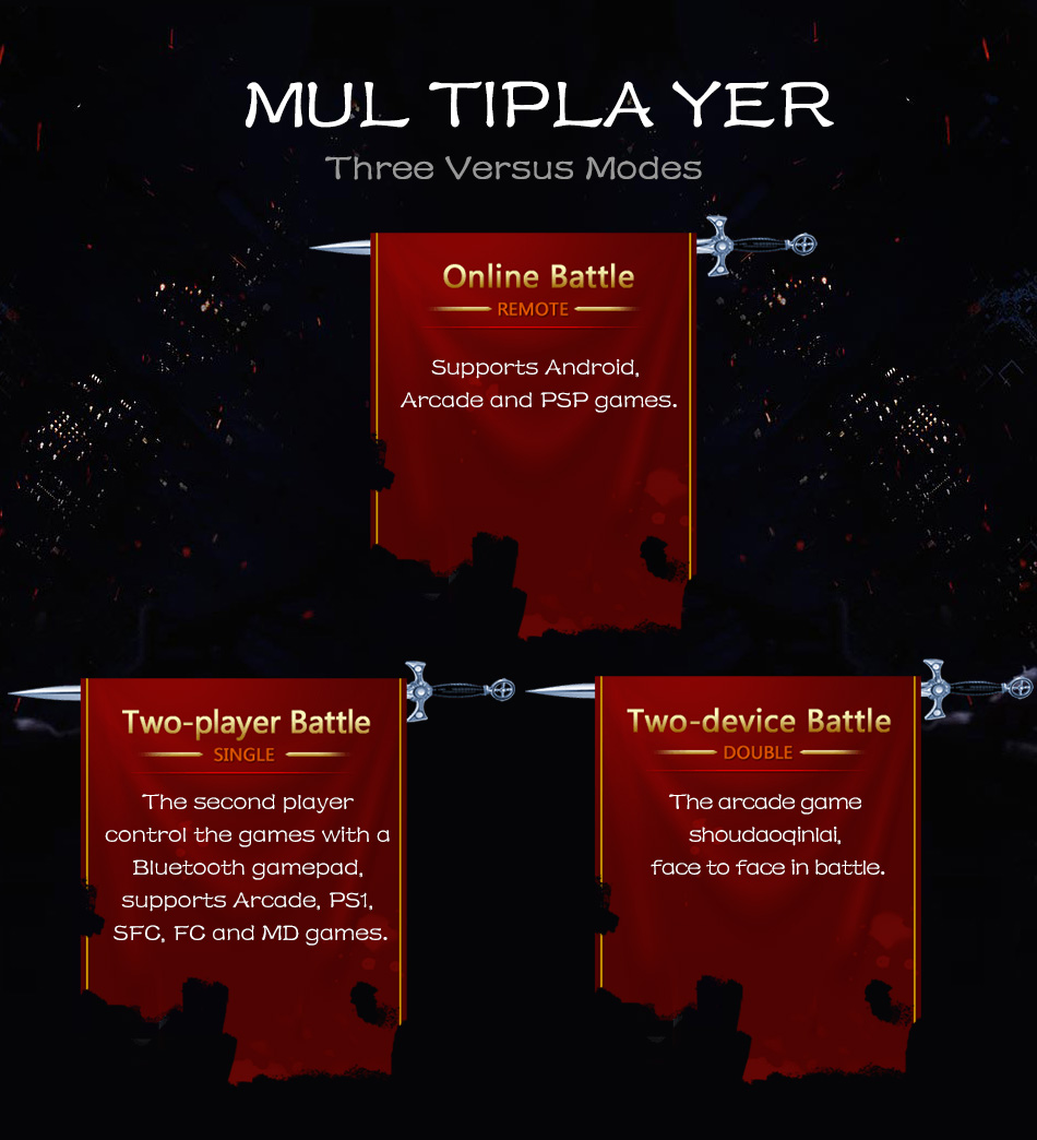 4. Full-featured button, dual 3D joystick(Joystick can be pressed), giving you the best game control experience .Supports Andriod/PC Games,Support PSP/PS/NDS/DC/N64/ARCADE/MAME/CPS/GBA/GB/FC/SFC/SEGA et cetera 18 simulators Games.